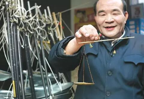 在电子秤无缝不入的年代,老式的秤杆似乎只能在街头小贩那里才能偶尔看到。造秤的老人却不管这些,带着花镜做的入迷,时间在她那里似乎已经静止。