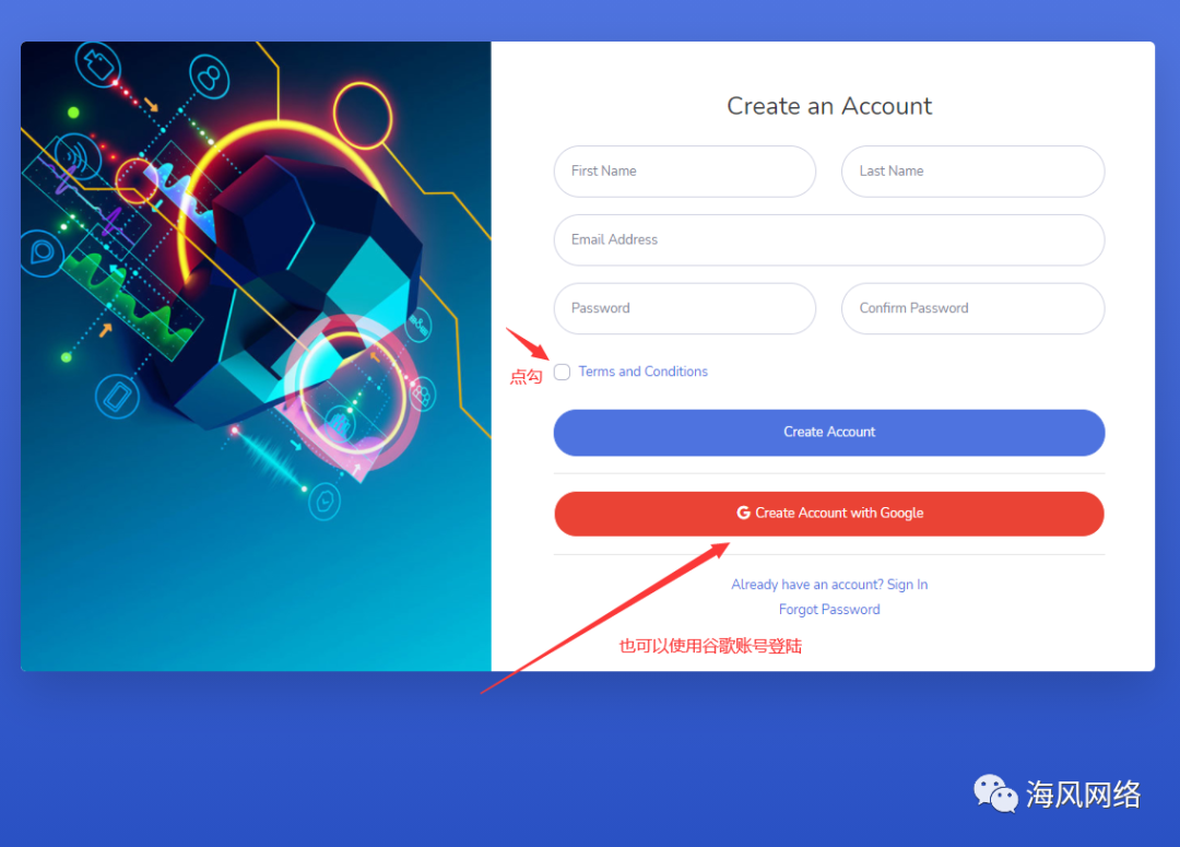 注册并且验证邮件之后就可以登录,如果你有谷歌账号,也可以用谷歌,但是密码是自定义,并不是你的谷歌账号密码。